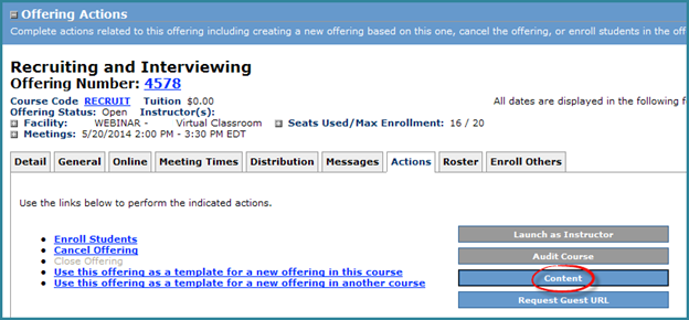 You can access than information through the CONTENT button on the Actions tab in any offering. Unfortunately, once a session has been completed, the